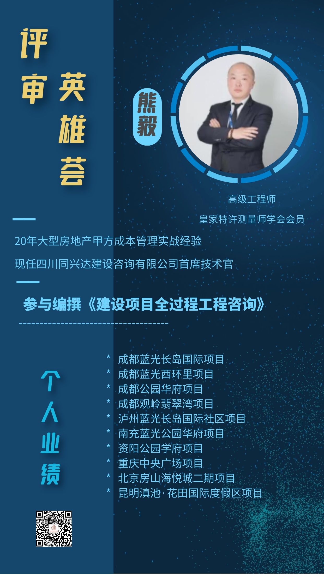 高级工程师,皇家特许测量师学会会员(RICS)