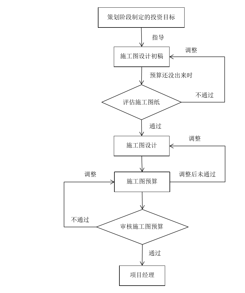 将策划阶段制定的投资目标提交给项目经理,由项目经理向设计人员(组)提出限额设计要求,并由投资管理人员向设计人员进行目标交底;施工图预算未出时,首先评估施工图图纸,主要从建筑装饰材料、安装材料、装修标准、结构形式等方面评估其整体方向是否符合策划阶段制定的投资目标,并编写《施工图评估意见单》,提交给项目经理签字确认;施工图预算初步完成后,用数据摘取分析的方法审核预算内容,包括预算内容与施工图设计内容是否一致,与策划阶段制定的投资目标是否一致,采用的信息价是否正确,主要材料、设备价格是否合理,主要指标是否合理等等,并编写《施工图预算审核意见单》,提交给项目经理签字确认,由项目经理判定移交给设计人员或预算编制人员调整优化。1.未出预算时,对施工图设计现有的图纸等资料或数据,从整体方向对比评估其是否符合策划阶段制定的投资目标,并提出意见;2.施工图预算初步完成后,主要从两方面对其进行审核,一是预算内容与施工图设计图纸的一致性、与策划阶段制定的投资目标的一致性,而是预算本身的信息、数据、指标的正确性及合理性。