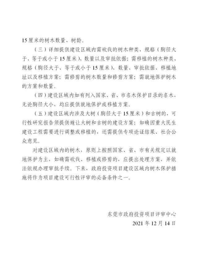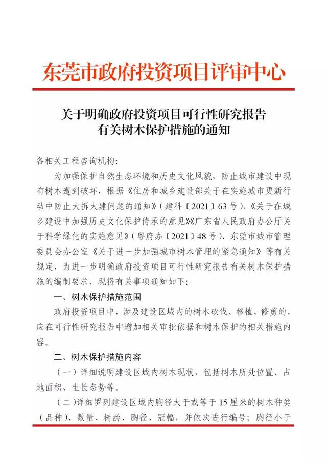 东莞:明确政府投资项目可行性研究报告有关树木保护措施